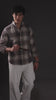 A Grey vertically-striped, button-down shirt with contrasting white buttons, styled with full sleeves for a versatile smart-casual look.