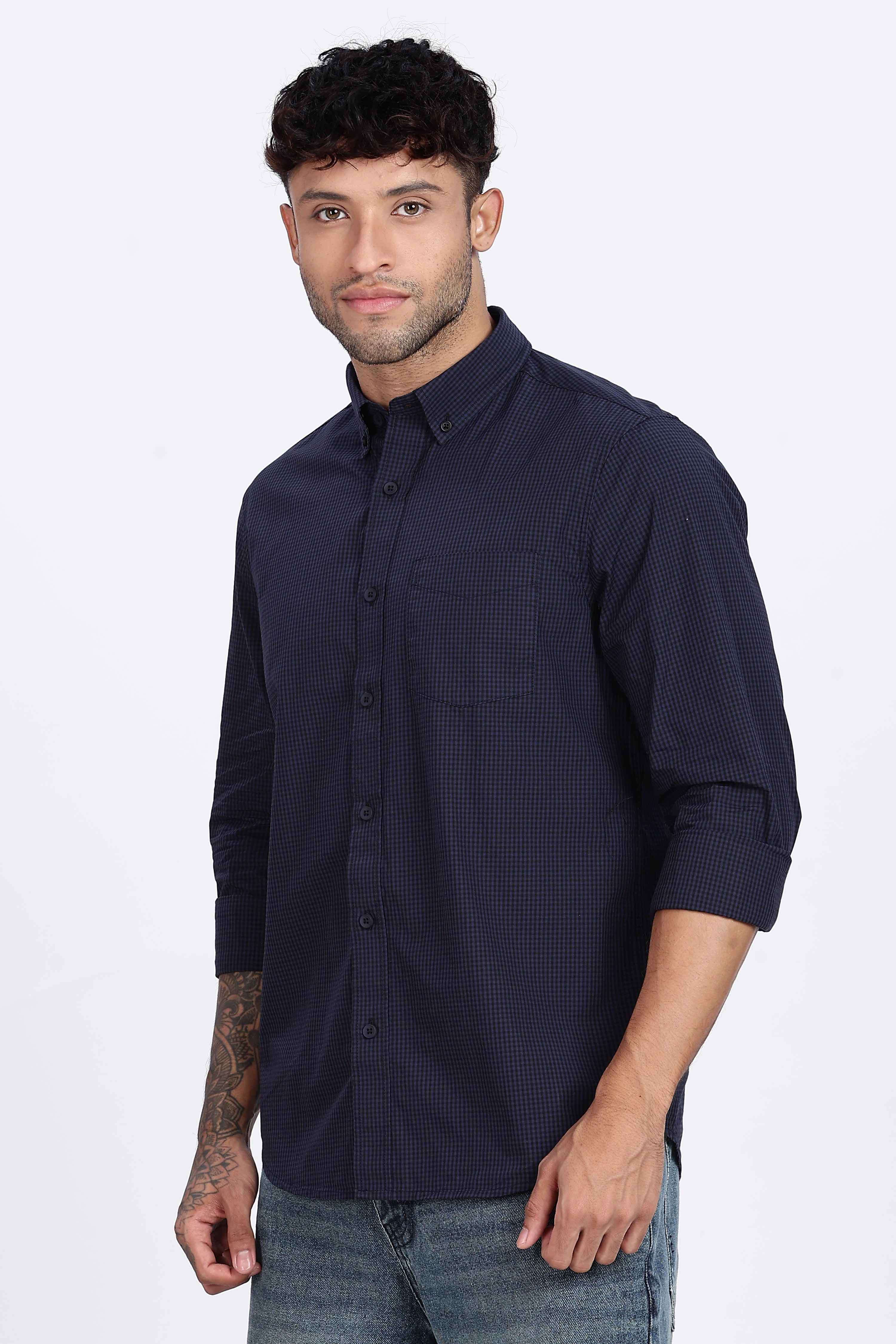 This micro check shirt combines classic style with contemporary comfort, featuring premium cotton fabric that breathes effortlessly throughout your day. The button-down collar and euro fit create a refined silhouette perfect for professional and casual occasions alike. Full sleeves offer versatile layering potential, making this an essential addition to any discerning wardrobe.